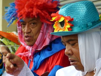 Pero esto no es tan simple. Tras el niño hay un despliegue de comparsas en las que intervienen músicos y bailarines vestidos con los trajes de personajes típicos. En la fiesta de enero de 2017, fecha en la que se hizo esta documentación, participaron 140 comparsas.